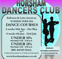 Horsham Dancers Club is a family run dance school in Horsham, West Sussex founded in 1953. We specialise in Ballroom & Latin American Dancing. We offer dancing opportunities for everybody from absolute beginners to professionals.